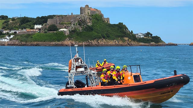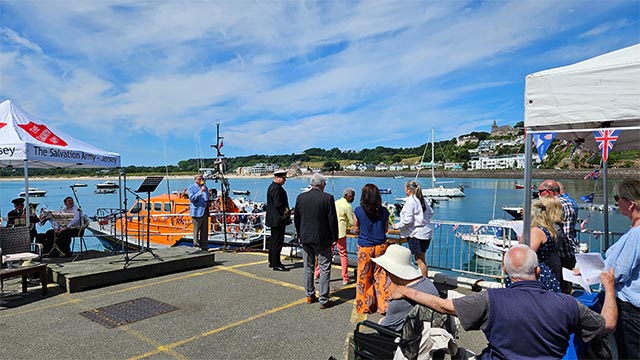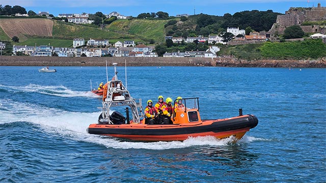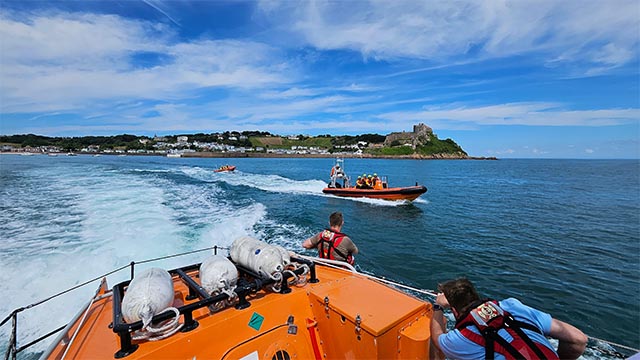 At the conclusion of the services, our crew left Gorey to enjoy a gorgeous day on the water. Albert Pinel conducted an impromptu exercise with Jersey Fire & Rescue on veering down around the Havre des Pas area, cementing relationships, working capabilities and inter-operability. We then headed back to St Helier for wash down and to get ready for tasking.